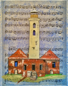 Vuurtorens, mixed media, acryl 30x24